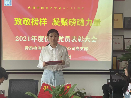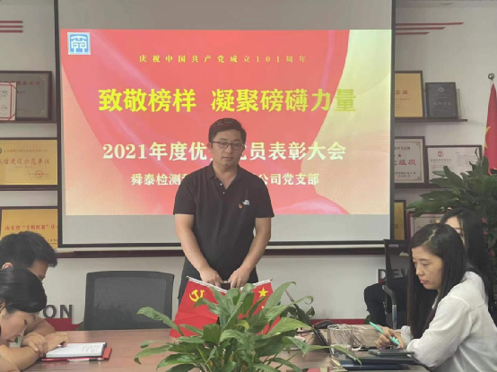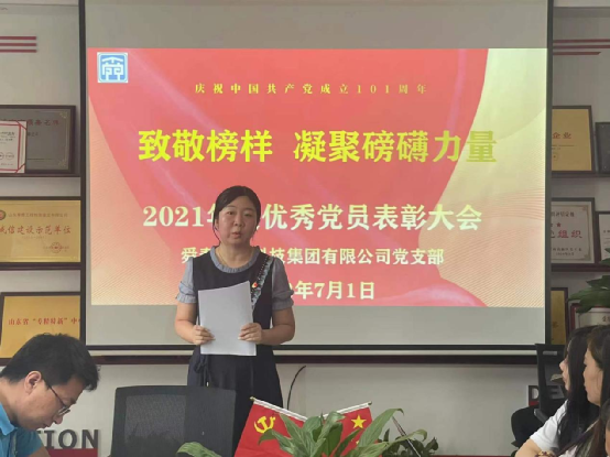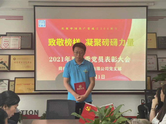 7月1日下午,集團公司黨支部在黨員活動室召開慶祝建黨101周年暨2021年度優(yōu)秀黨員表彰大會,公司趙書記、劉總、黨建指導員劉書記、全體黨員、部門負責人及入黨積極分子參加了會議,會議由趙書記主持。